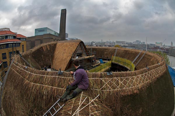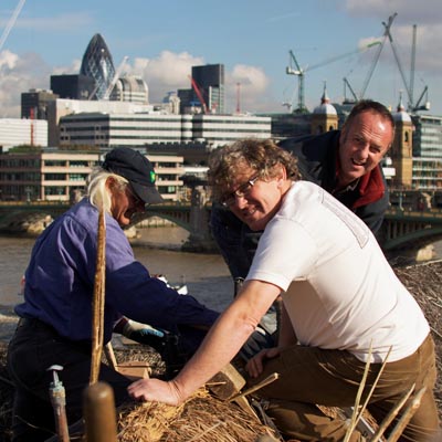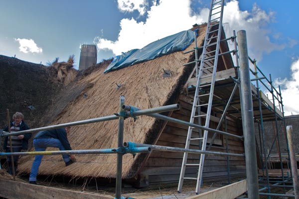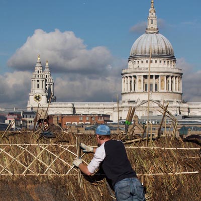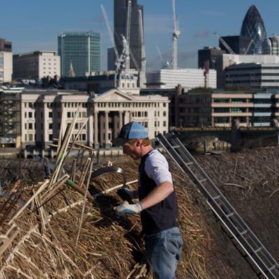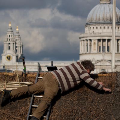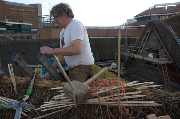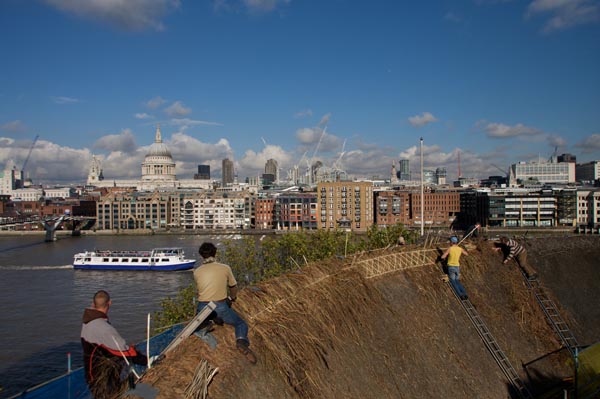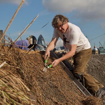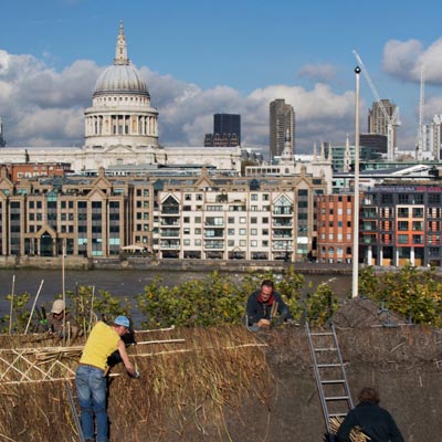 Perhaps the most iconic thatched building in existence today, and the only thatched building in central London since the Great Fire of 1666! In October 2008 Kit Davis and Phil Campbell were awarded the contract of repairing the roof area over the stage and reridging the entire circumference of Shakespeare's Globe.
